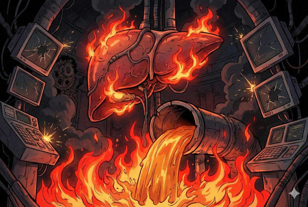 その肝臓が、これほどの大音量で悲鳴を上げ、身体にSOSのサインを出しているということは、すでに限界の壁を越え、肝硬変という引き返せない崖っぷちに立っている証拠です。